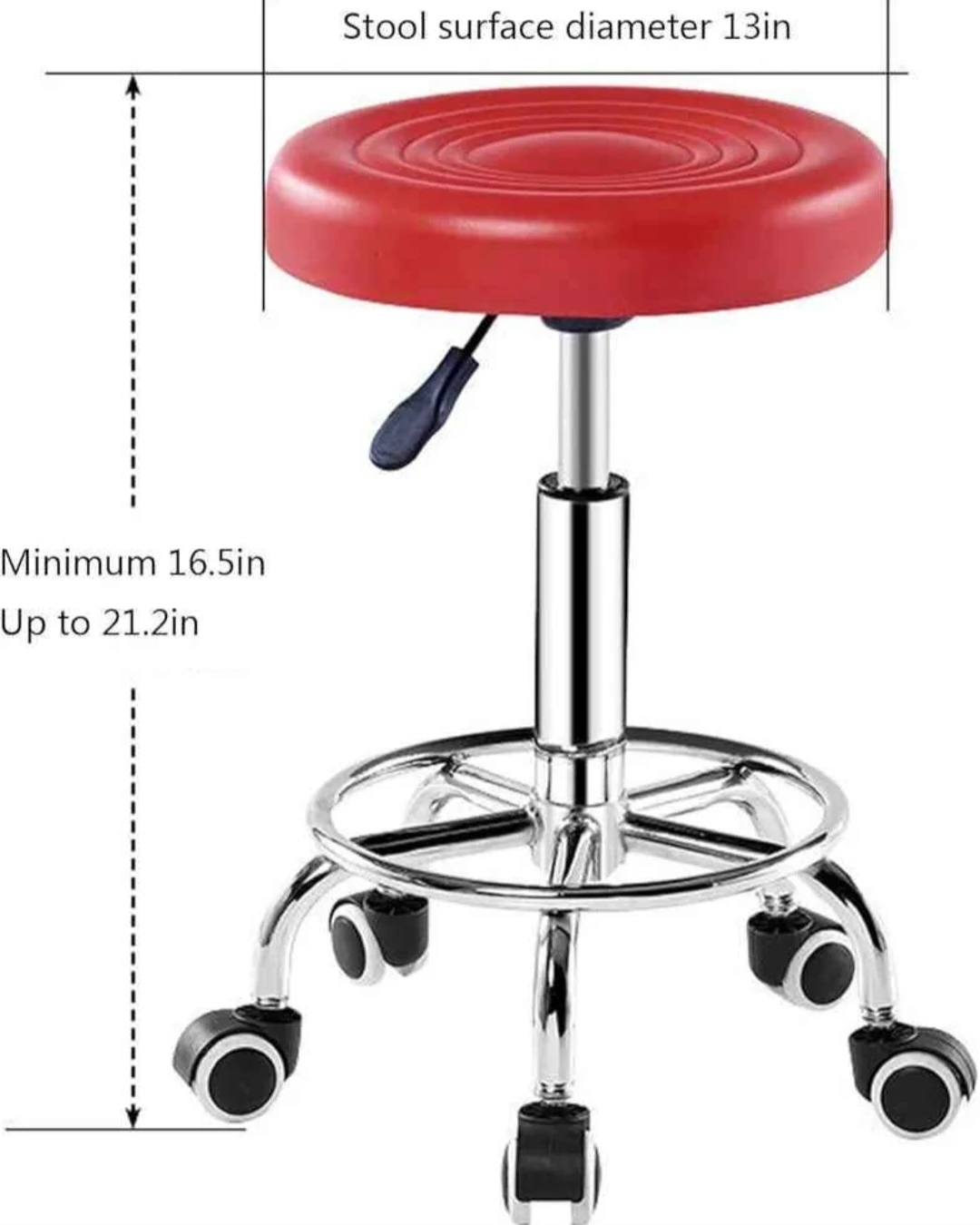 Easy operation:You can easily adjust the seat height by hand lever,height range from 16.5 inches to 21.2 inches,meet varying heights and applications.Makes it easier to get through a busy day, very convenient for multi-tasking work. Quality Material: Metal base and Hydraulic gas lift. Seat cushion is filled with brand new sponge and wrapped in quality PU leather, water and oil resistant. |